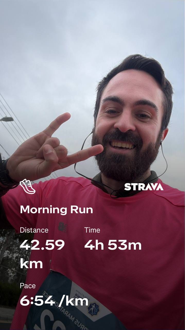 My friend Matt and my wife Artemis checked in. An old running buddy sent a message that said, “The marathon starts at 30k.” He knew exactly where I was, and I burst into tears while running.
